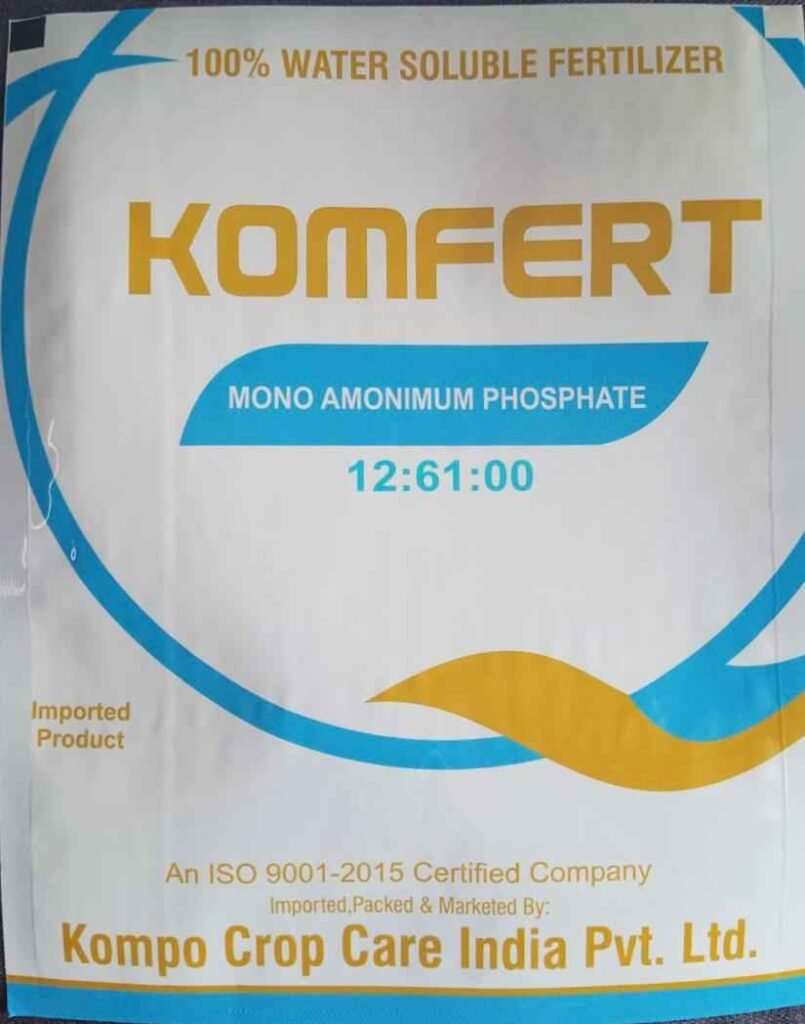 कोम्फर्ट (12: 61: 00) यह एक विशेष आयातित 100% पानी में घुलनशील फर्टिलाइजर है जिसमे नाईट्रोजन 12% फास्फोरस 61% उपलब्ध हैं। यह पौधो को आसानी से उपलब्ध हो जाता है। जिसे छिडकाव / ड्रिप सिचाई के माध्यम से दिया जा सकता हैं। इसके उपयोग से जड़ो का विकास, शाखाओ को मजबुती एवं फुलो की संख्या बढ़ती है एवं फसल का सर्वांगीण विकास होता हैं।