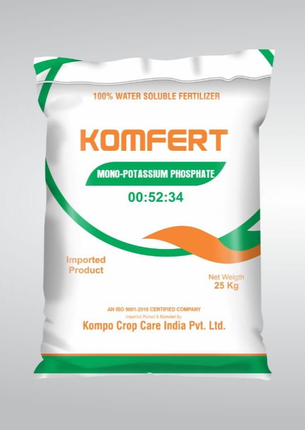 कोम्फर्ट ( 00: 52: 34 ) यह एक विशेष आयातित 100% पानी में घुलनशील फर्टिलाइजर है जिसमे फास्फोरस 52% एवं पोटाश 34% उपलब्ध हैं। यह पौधो को आसानी से उपलब्ध हो जाता हैं। जिसे छिडकाव / ड्रप सिचाई के माध्यम से दिया जा सकता हैं। इसके उपयोग से फुलो की संख्या में वृद्धि, फलो की वृद्धि, फलो में रस बनाने की क्षमता एवं इनका आकार व वजन बढ़ाने मे किया जाता है। फसल का सर्वांगीण विकास होता हैं। फसल कपास, मुंगफली, तिल, सोयबीन, सूर्यमुखी, अंरडी, अरहर, चना, मुंग, जीरा, धनिया, तम्बाकू, फूलगोभी, चाय, कॉफी, सब्जियाँ, जैसे अंगुर, टमाटर, भिण्डी, बैंगन, मिर्च, गोभी, आलू, अदरक, हल्दी, प्याज, लहसुन, फल-फूल पौधे, आदि ।